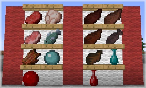 上面依次是:钻石、绿宝石、烈焰粉、石英、红石、青金石、光滑宝石、苔藓球、熔岩水晶、咒骨、腐烂蛛眼以及神圣土。